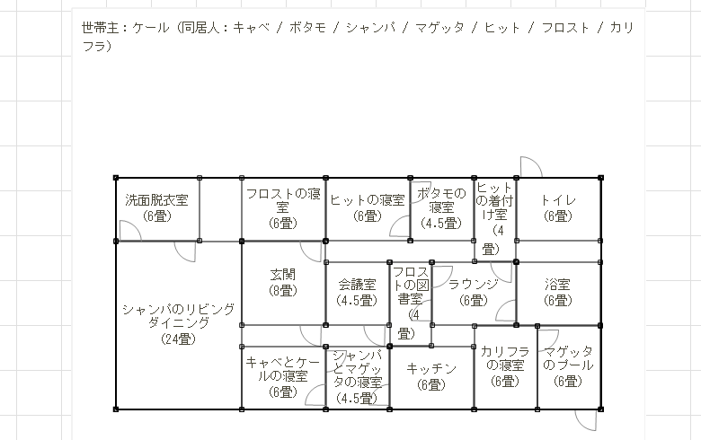 世帯主:ケール(同居人:キャベ / ボタモ / シャンパ / マゲッタ / ヒット / フロスト / カリフラ)