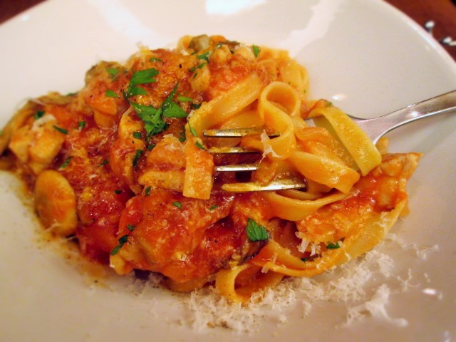 鶏ももときのこのフェットチーネ(トマトソース)にしました♪