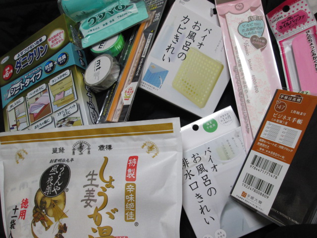 あとは爪やすりやらダニマット、おふろのカビ予防の天井にはるものなど