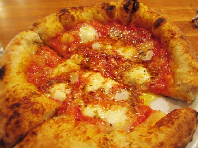 ピッツァはニンニクとアンチョビのマルゲリータ。