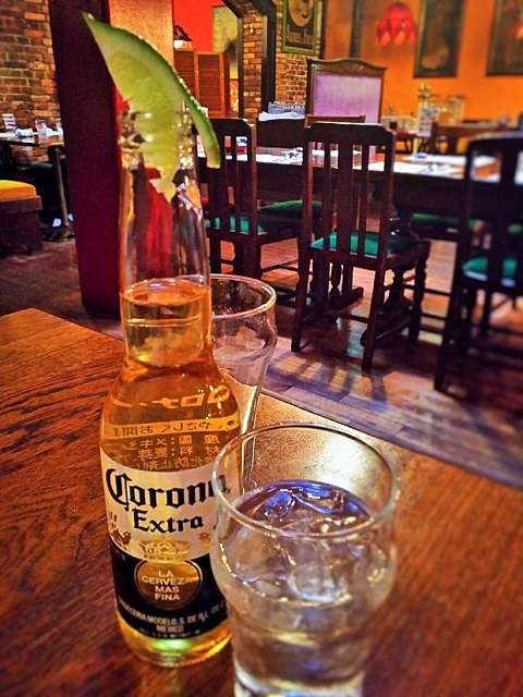 それだけじゃ物足りないので、シーザーサラダとコロナ。