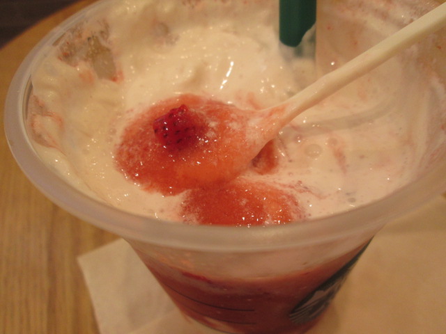 フラペ部分はいちごをぎゅーっと濃縮したような濃さ。