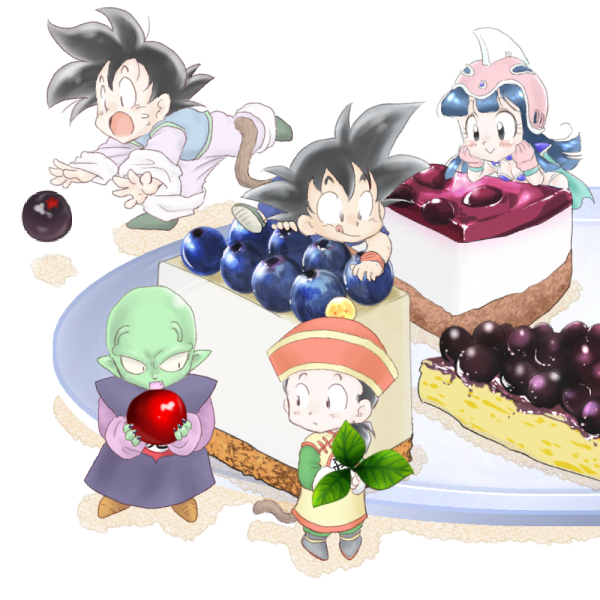 孫悟空、チチ、マジュニア、孫悟飯、孫悟天。