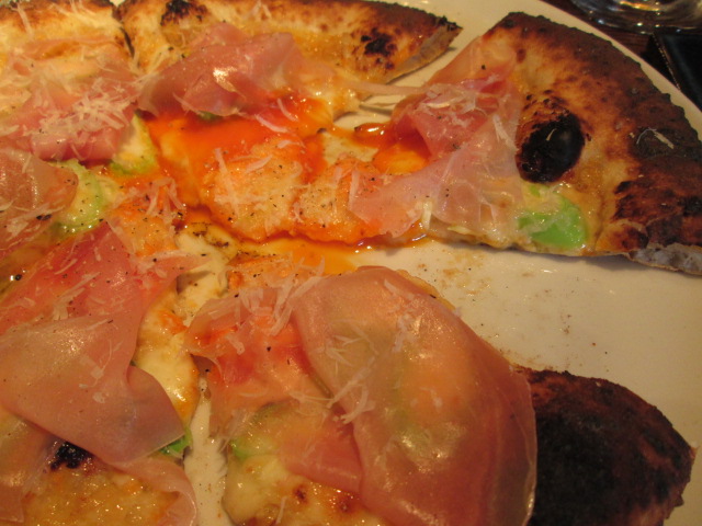 ピッツァは、アスパラガスとプロシュートのビスマルク。