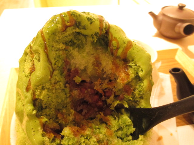 抹茶のかき氷の蜜もさっぱり♪と思ってたら、中にガツンと小豆が!!