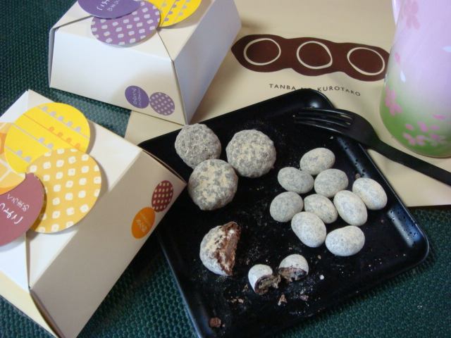 きなこ…やわらかくさっくりとした蜜煮黒豆を、チョコときな粉でコーティング♪