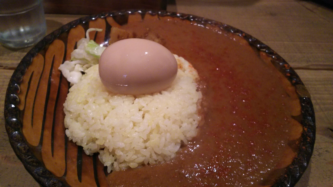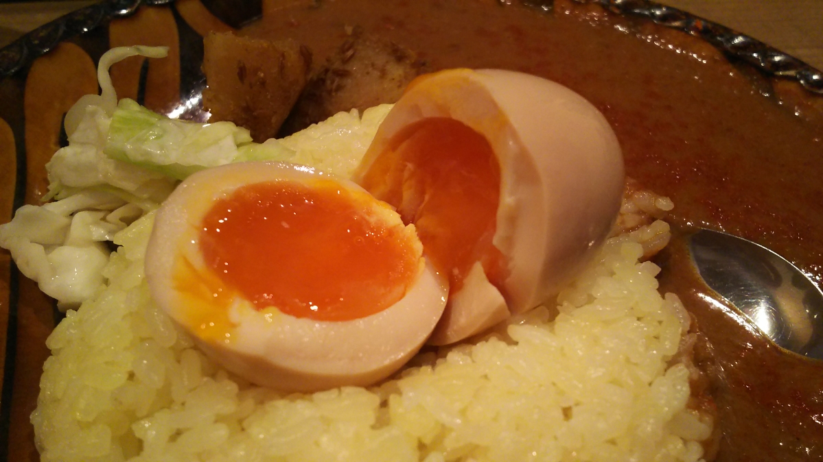 並のスパイシーに、半熟玉子トッピングを注文です。