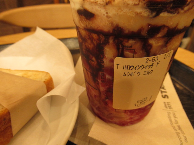 黒いチョコソースと、真っ赤なりんごソースがなかなかグロい(笑)