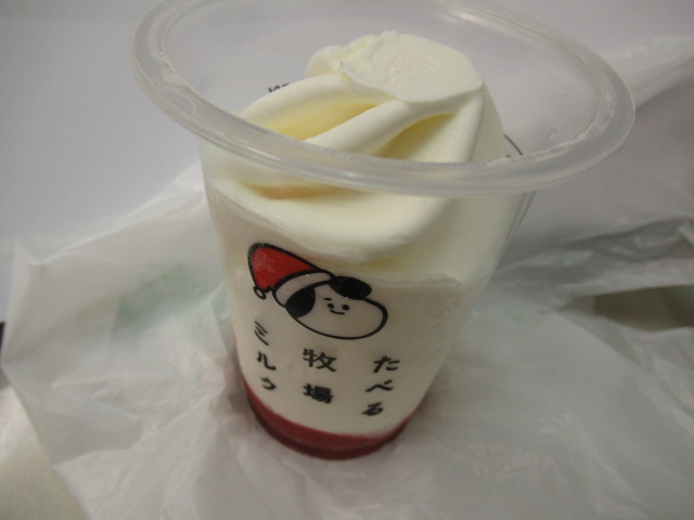 ミルク感たっぷりのアイスの下に、甘酸っぱい苺ソース!