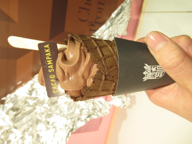 お昼がわりに、「カカオ サンパカ」にてソフトクリーム「ジャラッツ カカオ」を。