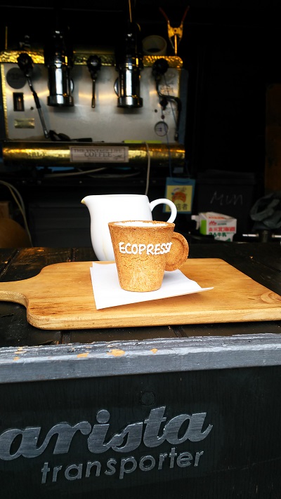 内側をアイシングでコーティングした、ハードクッキーのカップに注ぐのは、