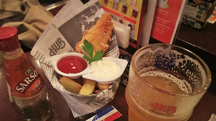 んで、頼んだことあるけど枝豆とフィッシュ&チップス。