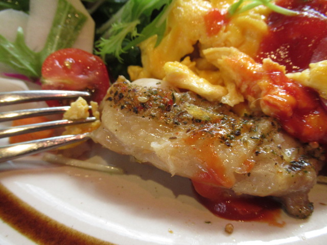 その下にはぷりぷりのハーブチキンが隠れていましたv