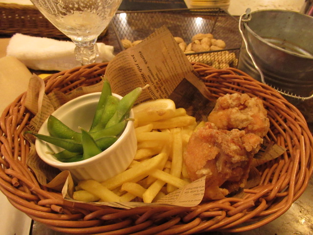 フライドポテト、但馬鶏極上唐揚げ、枝豆がセットになっております。