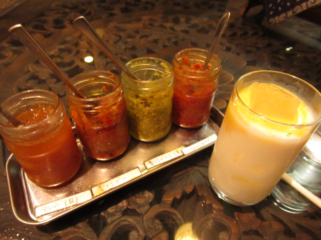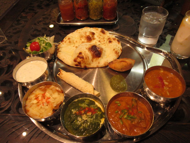 右からダール、ベジタブル、パラックパニール、なすチーズ、