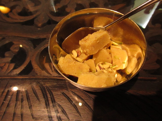 デザート、グラブジャムンかクルフィーか選べたのでクルフィーにしましたが、