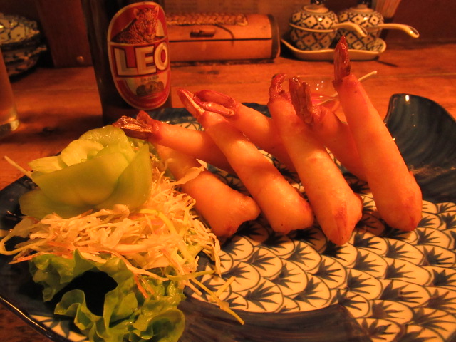 海老の春巻き、ソムタム(パパイヤのサラダ)、