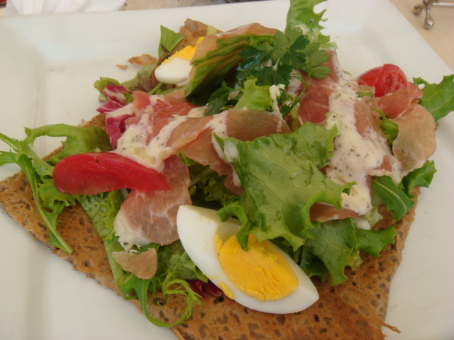 生ハム、トマト、卵、レタス、ルッコラのガレット。