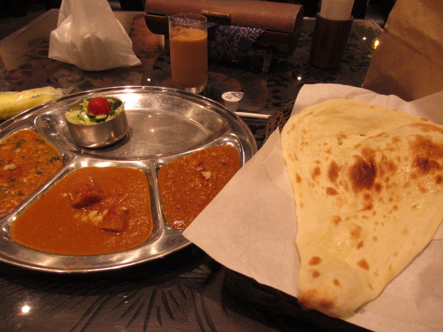 キーマ、チキンシークカバブ(キーマとかぶってるかもorz)、ほうれん草ダールにしました!