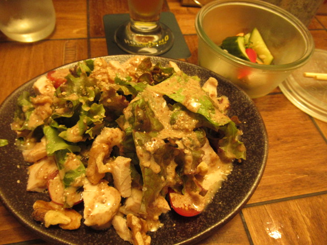 「蒸し鶏と木の実のゴマどれサラダ」