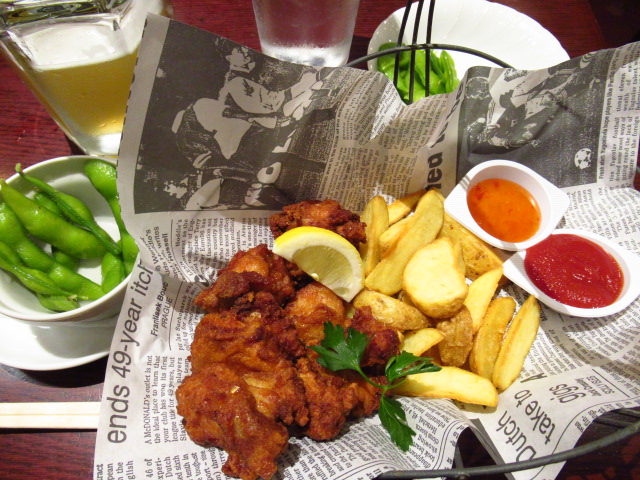 チキン&チップスと枝豆(ハーフ)と