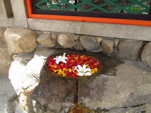 コロナの影響でお手水が使えないので花手水になっていました。綺麗TT