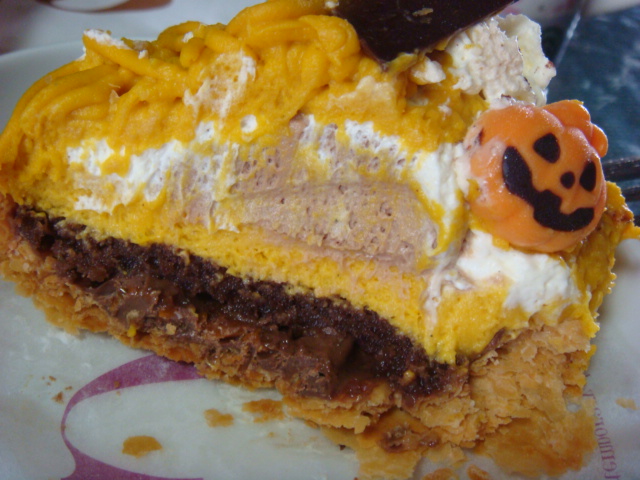 生クリーム、かぼちゃのペースト、チョコムース、チョコスポンジ、