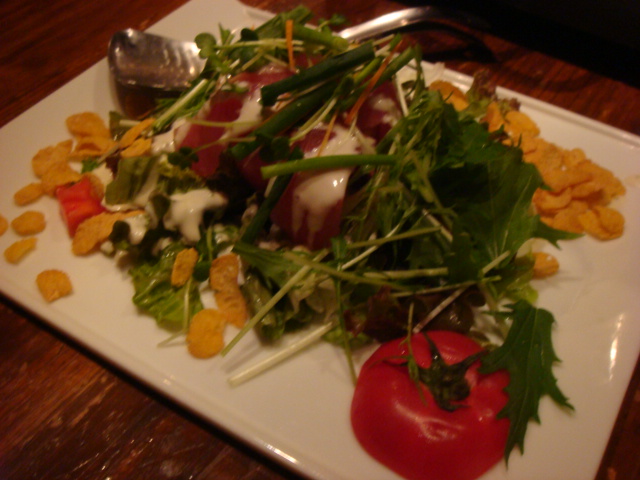 サラダはわさび風味で刺激があるけどさっぱり、