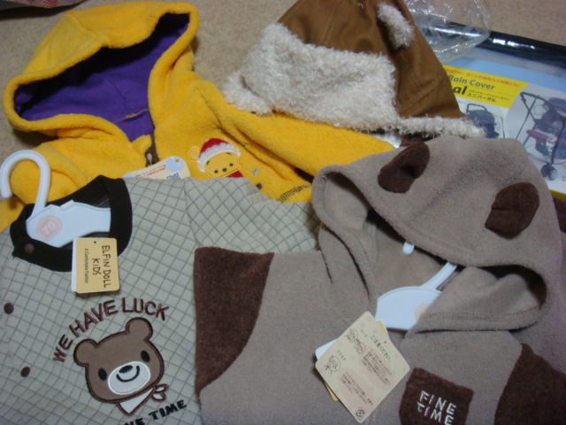 プーさんパーカーとお帽子、長袖オール、ベビーカーカバー。